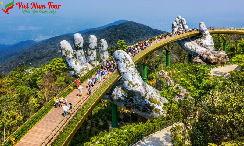 • Check-in Cầu Vàng – biểu tượng du lịch nổi tiếng toàn cầu với đôi bàn tay khổng lồ nâng cầu.