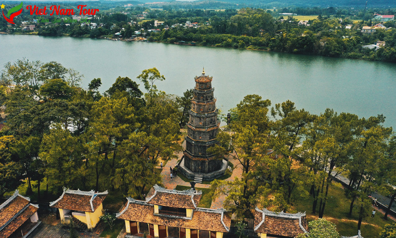 Tour Huế còn đưa du khách đến chùa Thiên Mụ, một trong những biểu tượng nổi tiếng của cố đô. Nằm bên dòng sông Hương thơ mộng, chùa không chỉ mang giá trị tâm linh mà còn là địa điểm tuyệt đẹp để chiêm ngưỡng khung cảnh Huế bình yên.